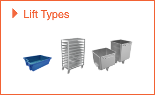 SYSPAL Tray Lifts are designed for quick transfer of product or ingredients in trays, buckets or various food industry containers between floors, onto mezzanines or equipment gantries within the production environment.