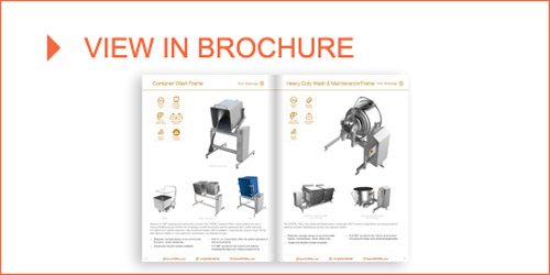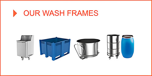 All wash frame models are available with bolt down feet or freestanding. Choose between a manual, direct drive or pneumatic model. The range allows for 360° cleaning and maintenance access, whilst reducing the risk of damage to both the container being washed and the washroom floor, improving throughput and hygienic practices.