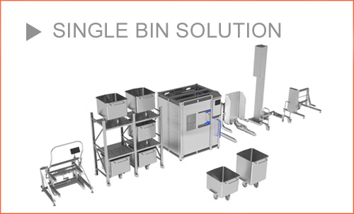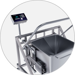 - The pneumatic weigh scale improves on both hygiene and safety when weighing product in 200 litre and 300 litre Eurobins.