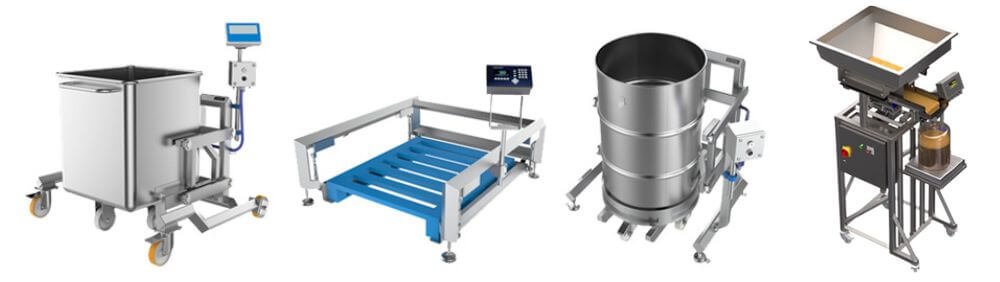 The weigh scale range includes static or mobile versions for ease of movement around the production area. Choose between a manually operated or pneumatically operated model, all models are IP65 approved for operator safety and use Mettler Toledo digital weigh heads.